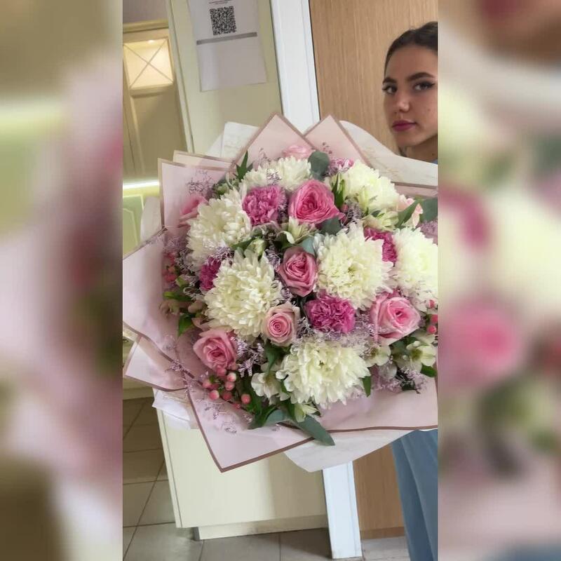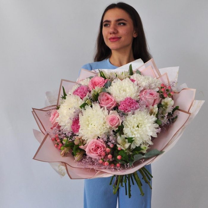 Категорий: Альстромерии, Гвоздики, Пионовидные розы, Розы, Хризантемы