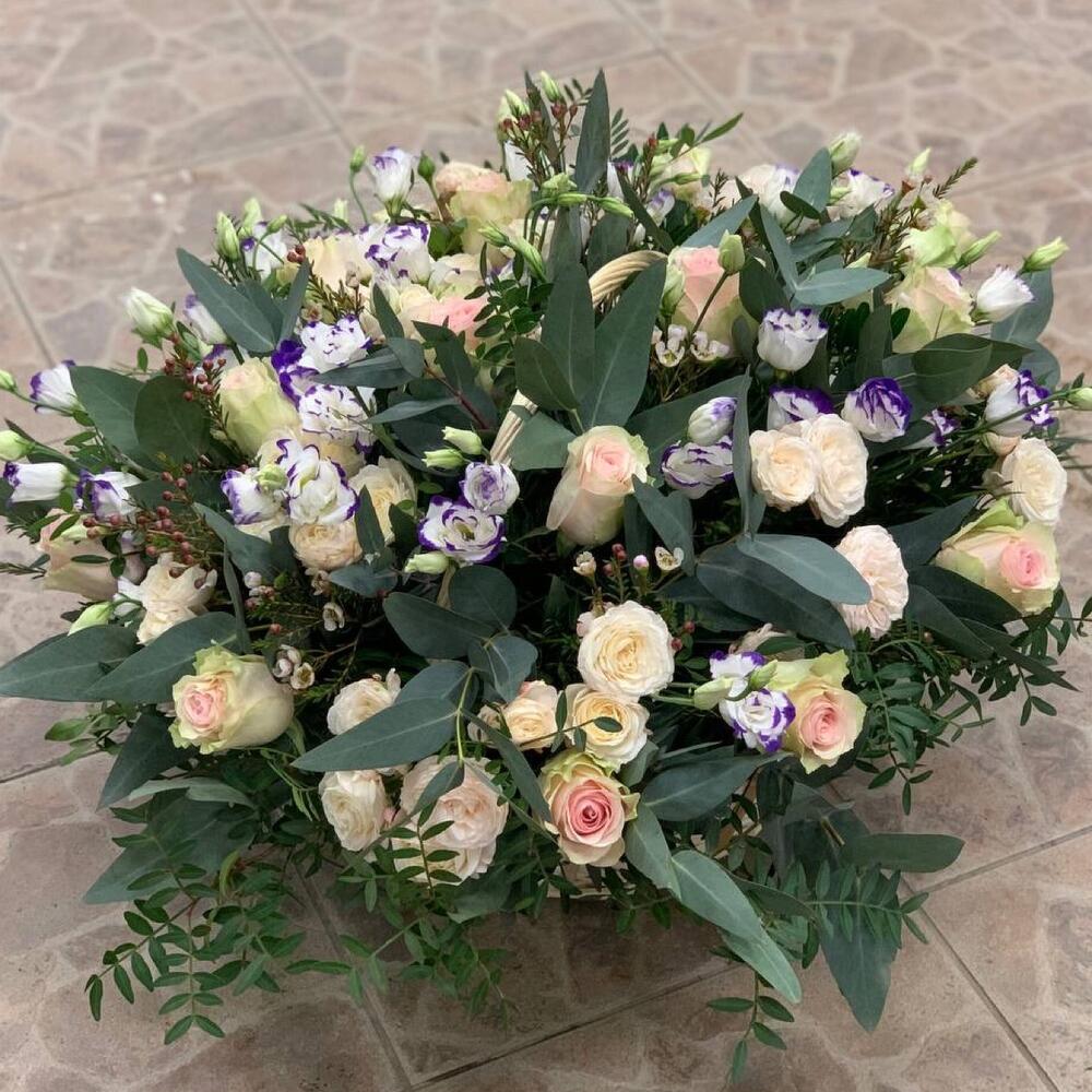 Альстромерии, Кустовые розы, Лизиантусы, Пионовидные розы, Розы, Ромашки